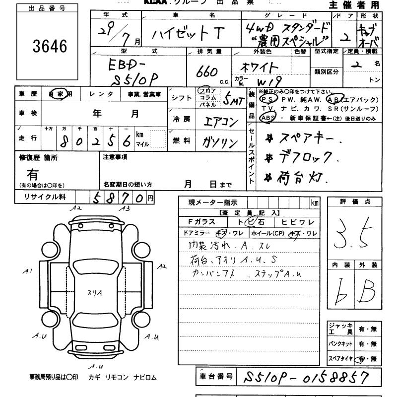 DAIHATSU HIJET TRUCK - лот 3646