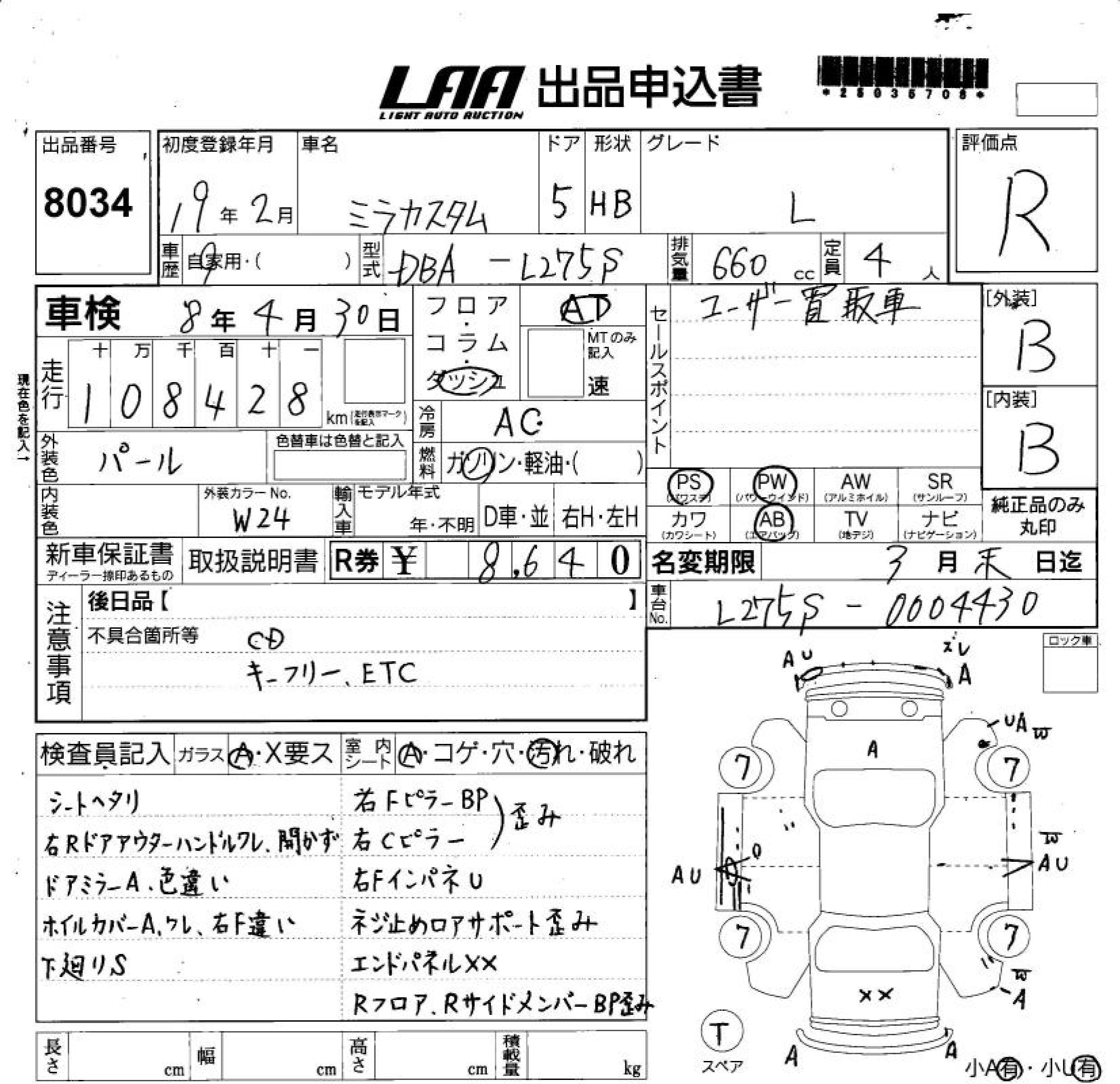 DAIHATSU MIRA CUSTOM - лот 8034