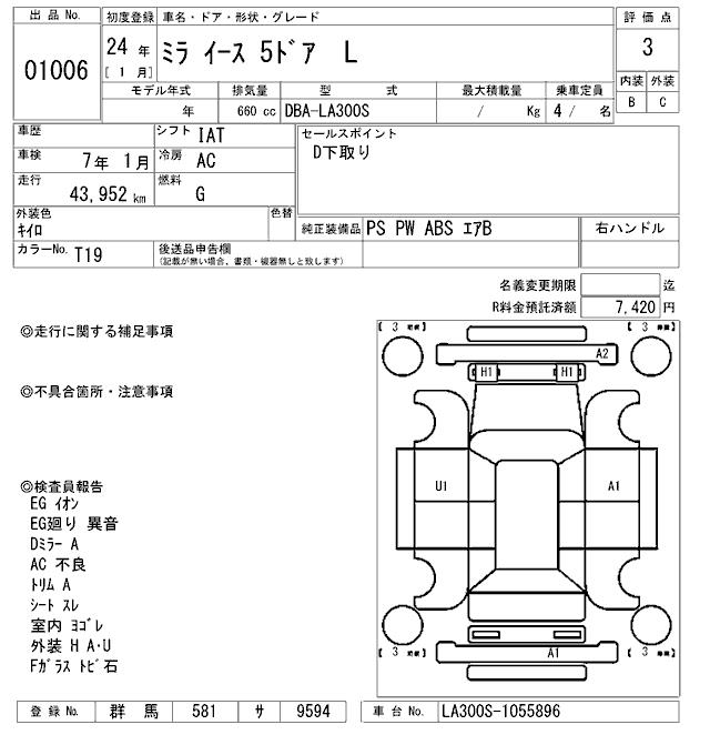 DAIHATSU MIRA E:S - лот 1006