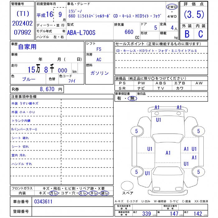 Все аукционы DAIHATSU MIRA GINO