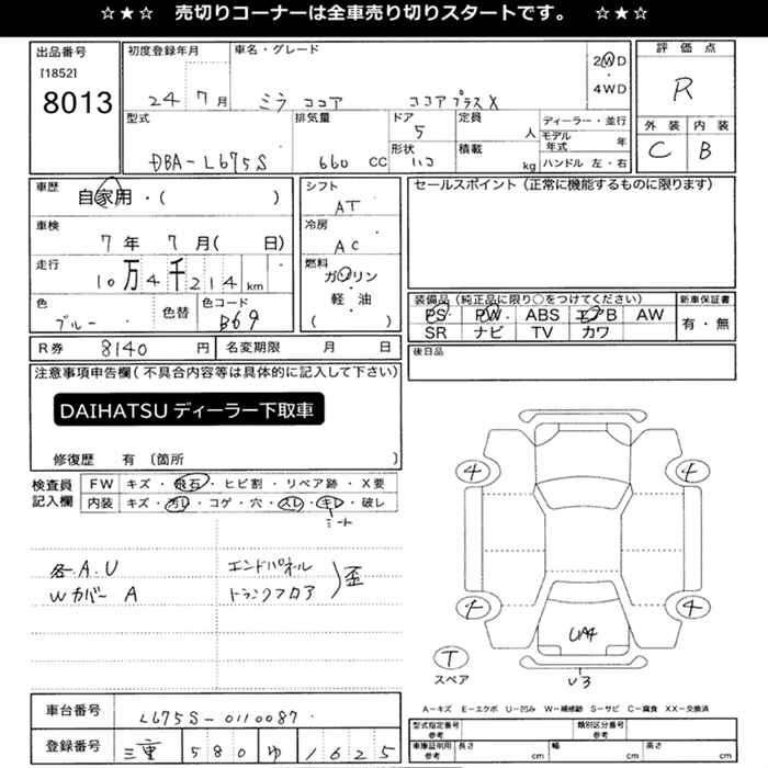 Все аукционы DAIHATSU MIRA COCOA