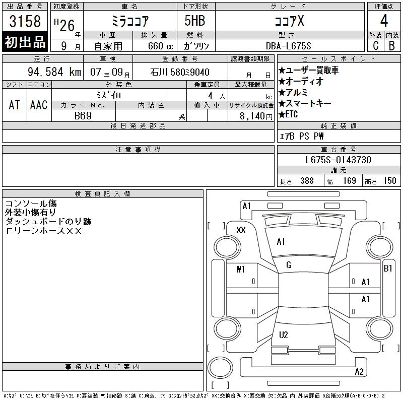 DAIHATSU MIRA COCOA - лот 3158