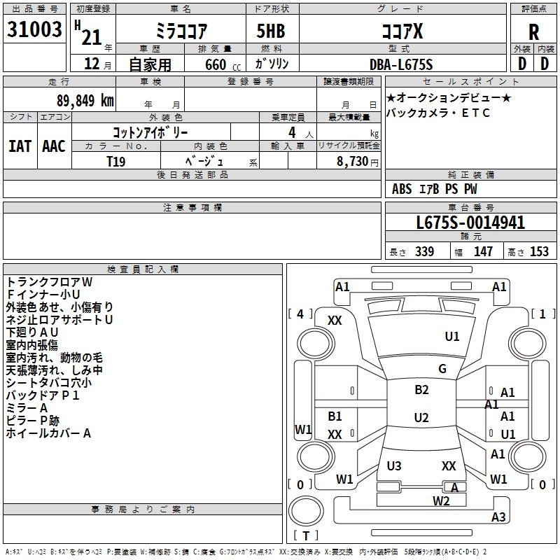 DAIHATSU MIRA COCOA - лот 31003