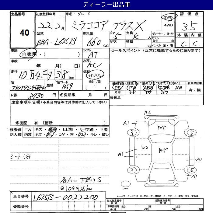 DAIHATSU MIRA COCOA PLUS X - лот 40
