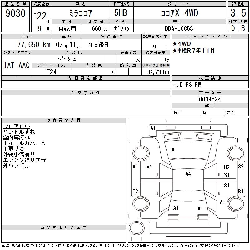 DAIHATSU MIRA COCOA COCOA X 4WD - лот 9030