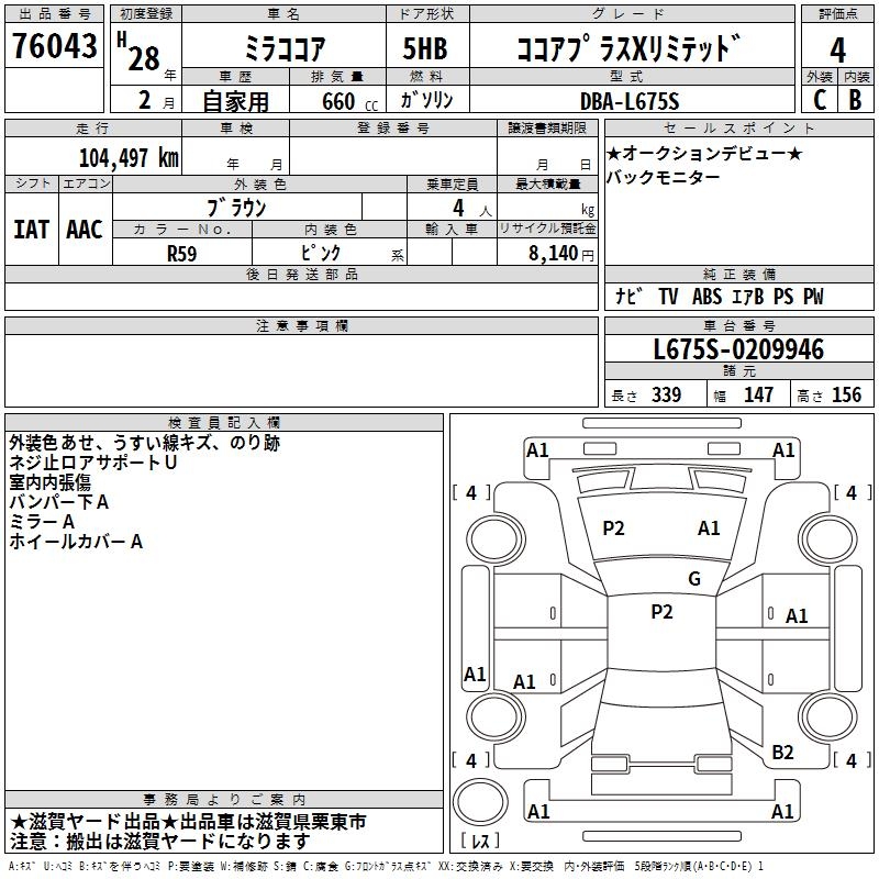 DAIHATSU MIRA COCOA COCOA PLUS X LIMITED - лот 76043