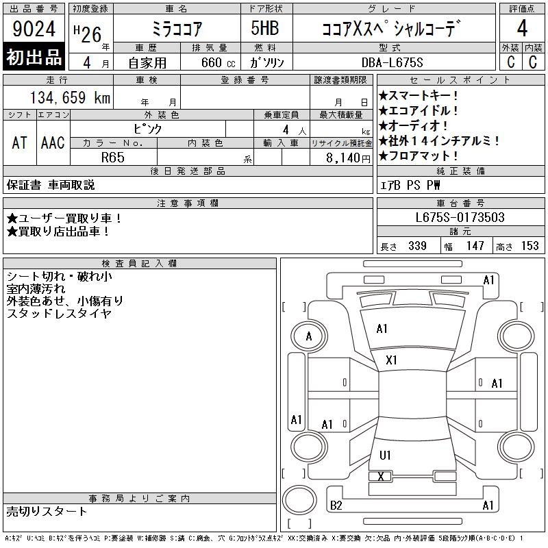 DAIHATSU MIRA COCOA COCOA X SPECIAL KO-TE - лот 9024