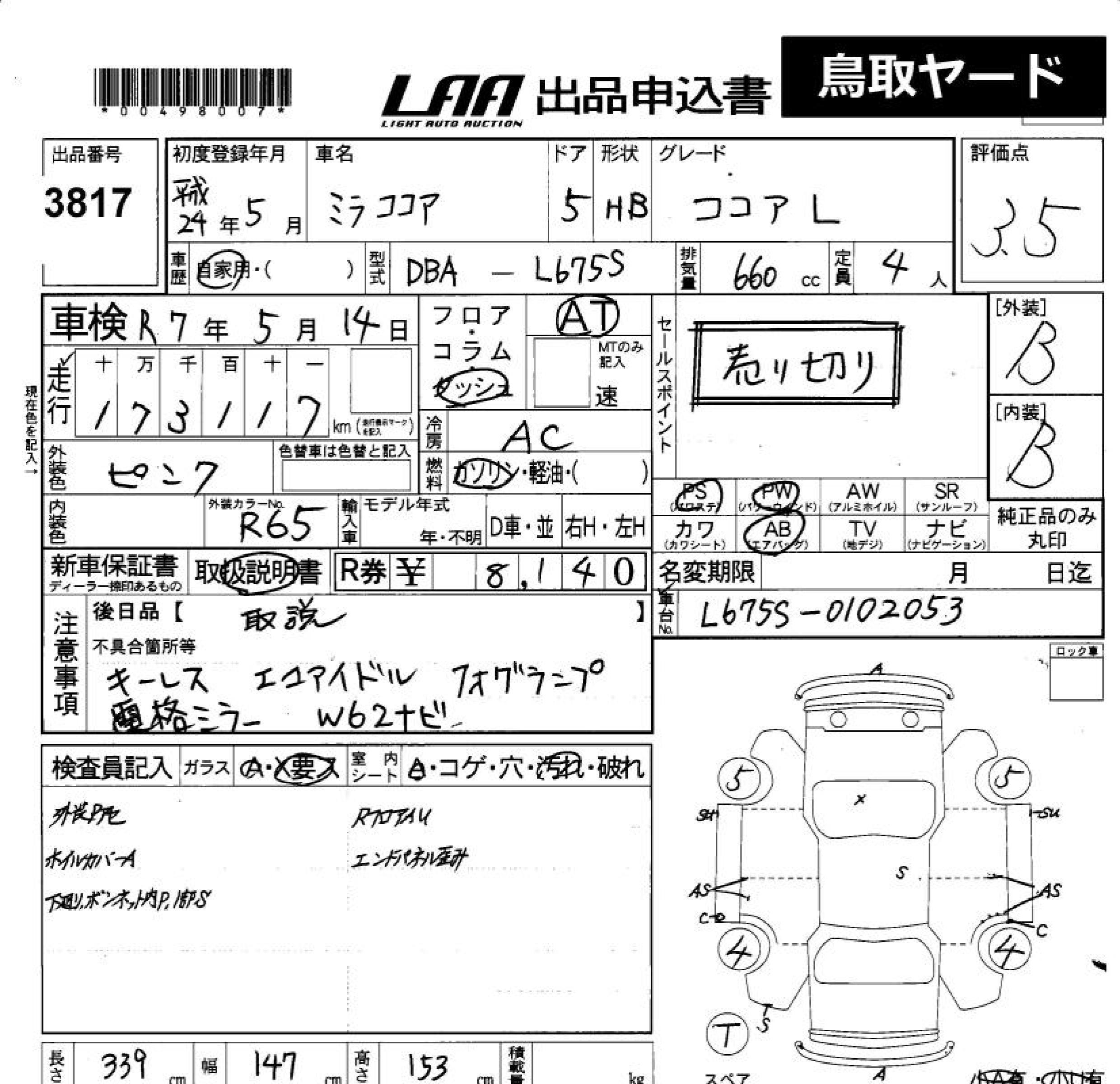 DAIHATSU MIRA COCOA COCOA L - лот 3817