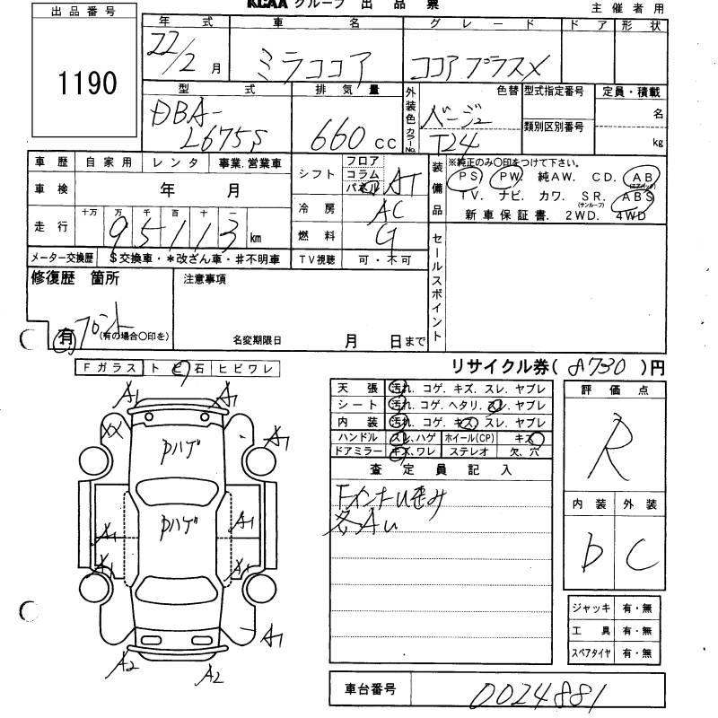 DAIHATSU MIRA COCOA COCOA PLUS X - лот 1190