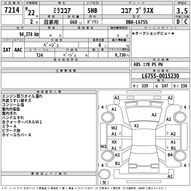 DAIHATSU MIRA COCOA COCOA PLUS X - лот 7214