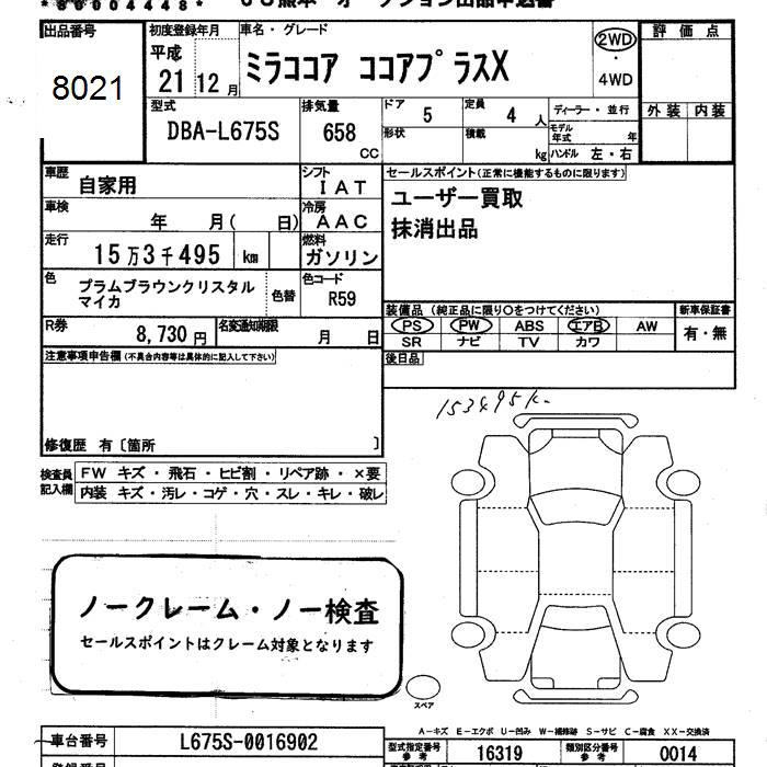 DAIHATSU MIRA COCOA PLUS X - лот 8021