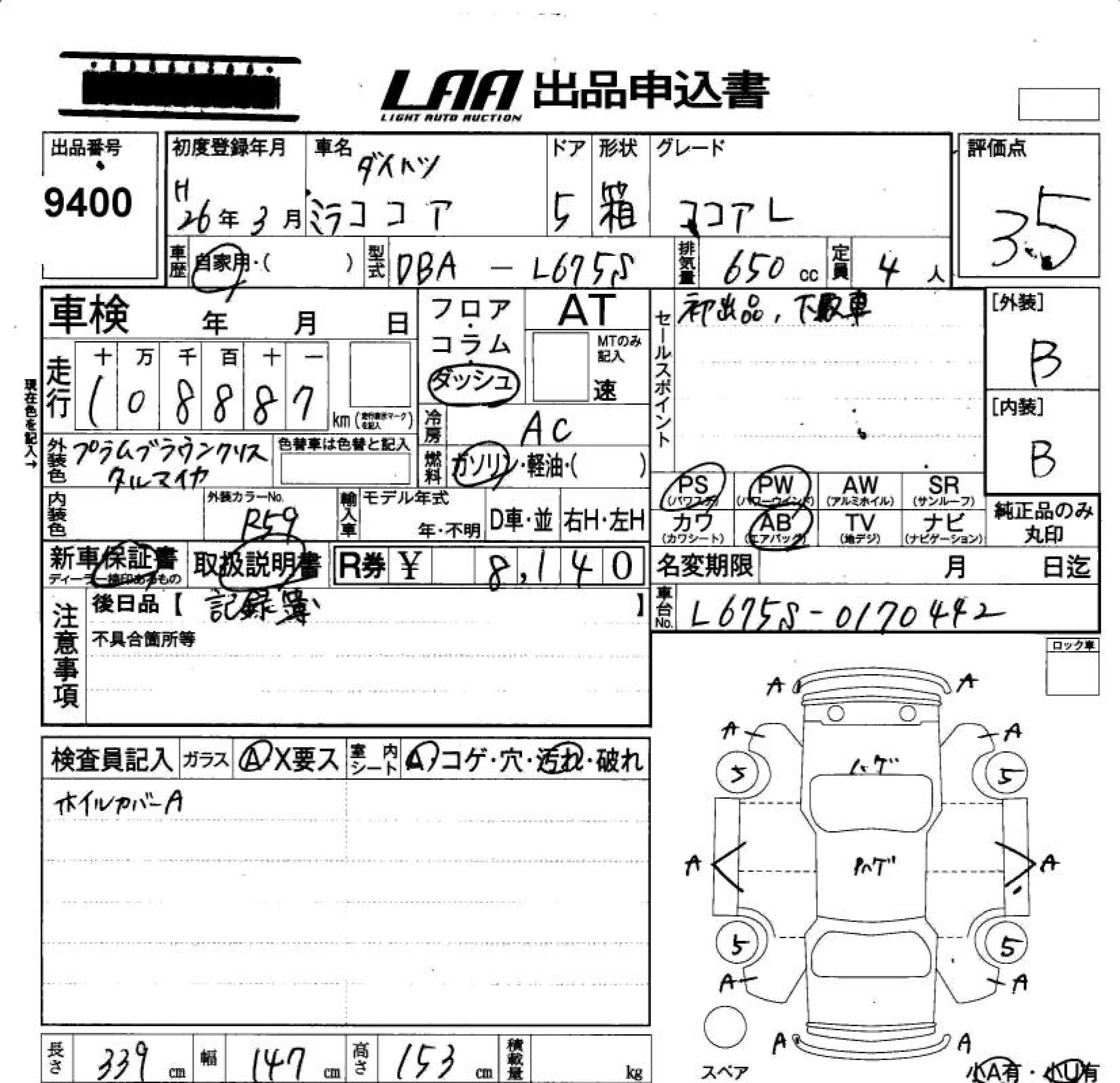 DAIHATSU MIRA COCOA COCOA L - лот 9400