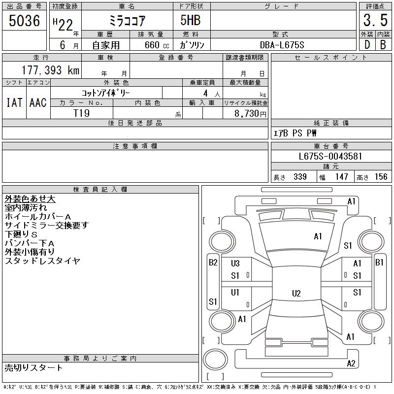 DAIHATSU MIRA COCOA - лот 5036