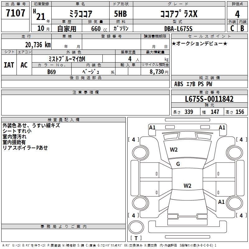 DAIHATSU MIRA COCOA COCOA PLUS X - лот 7107