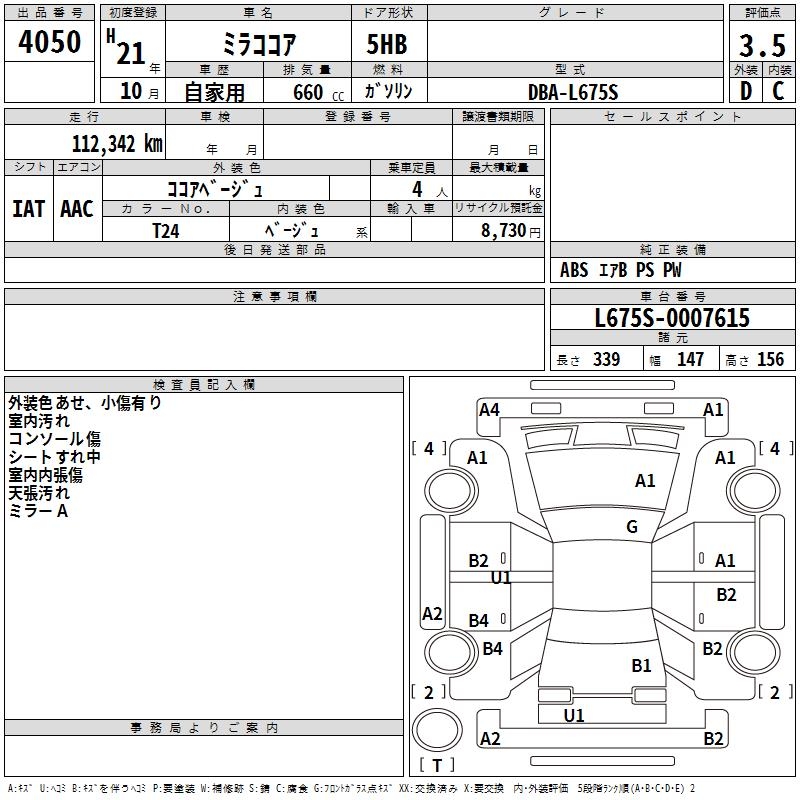 DAIHATSU MIRA COCOA - лот 4050