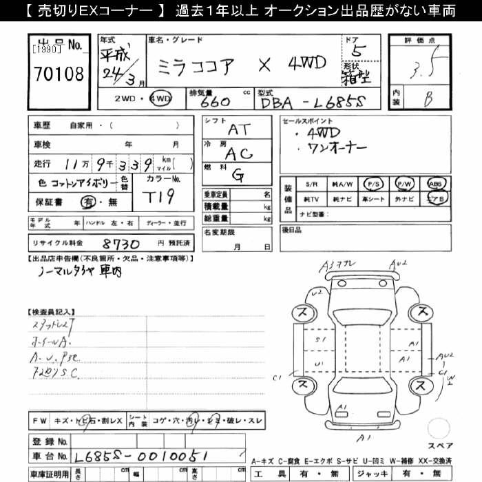 DAIHATSU MIRA COCOA 4WD X - лот 70108