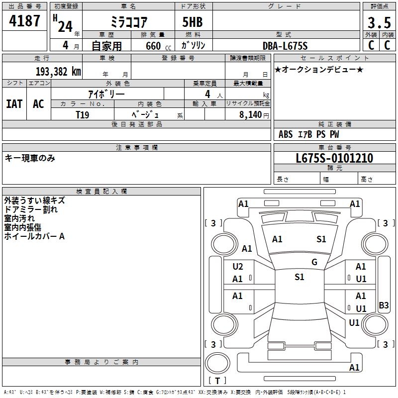 DAIHATSU MIRA COCOA - лот 4187
