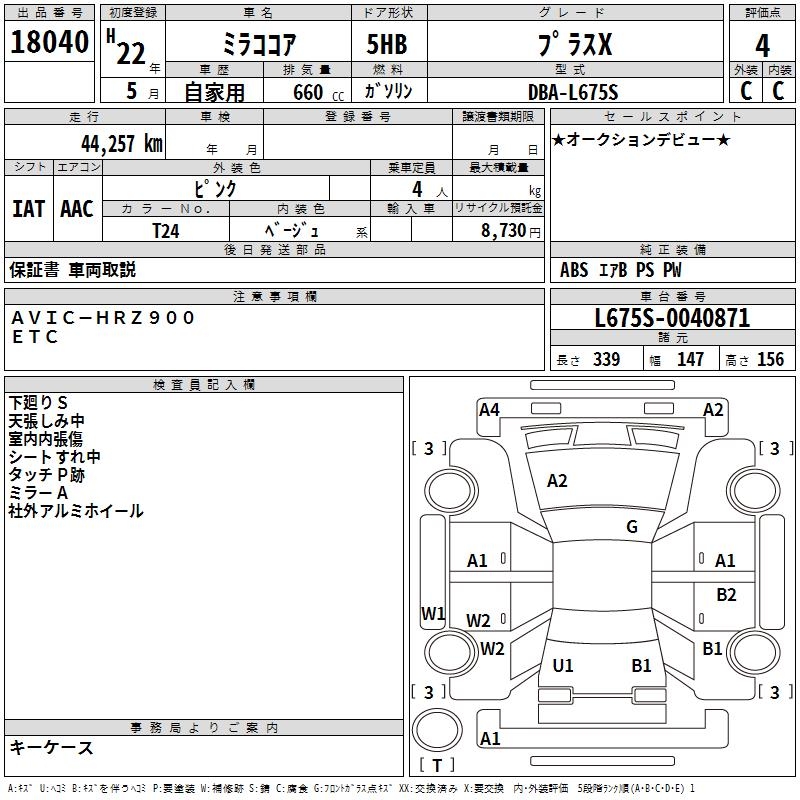 DAIHATSU MIRA COCOA PLUS X - лот 18040