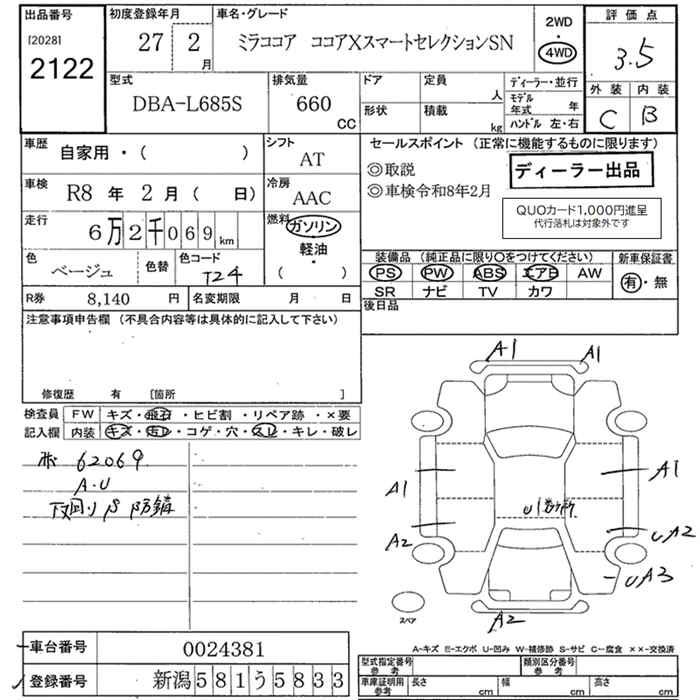 DAIHATSU MIRA COCOA 4WD X SMART SELECTION SN - лот 2122