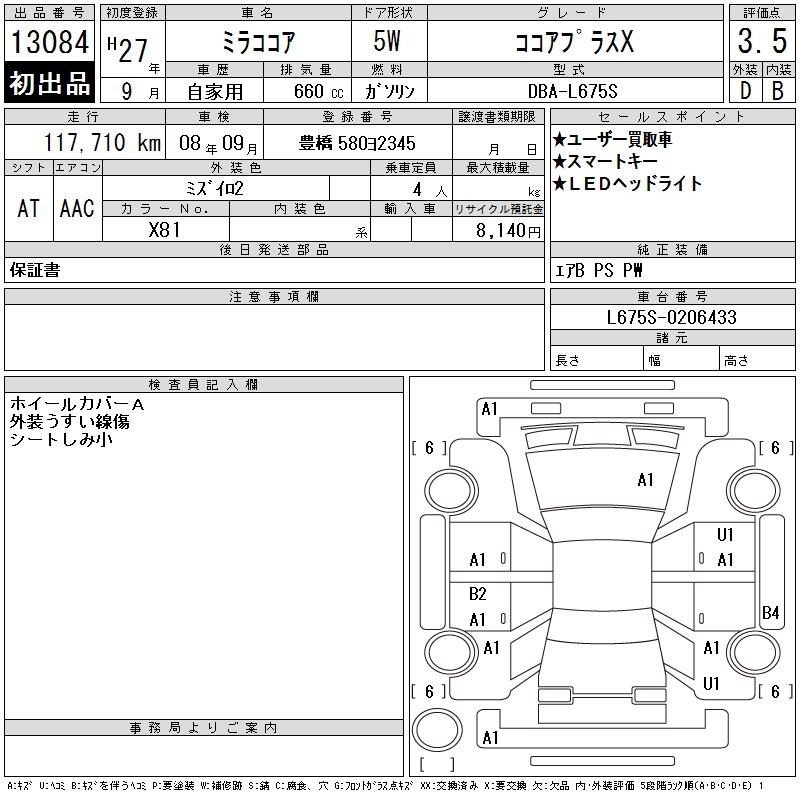DAIHATSU MIRA COCOA COCOA PLUS X - лот 13084