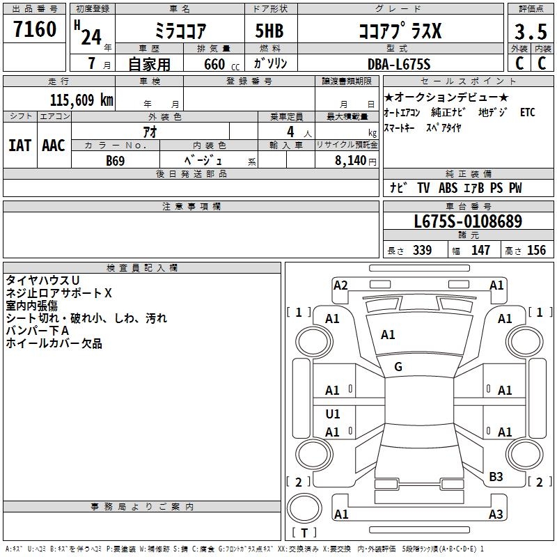 DAIHATSU MIRA COCOA COCOA PLUS X - лот 7160