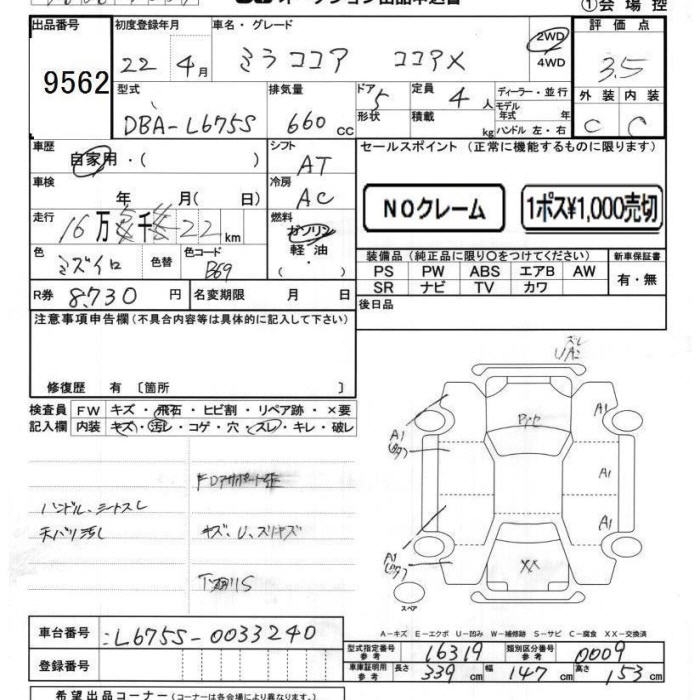 DAIHATSU MIRA COCOA X - лот 9562