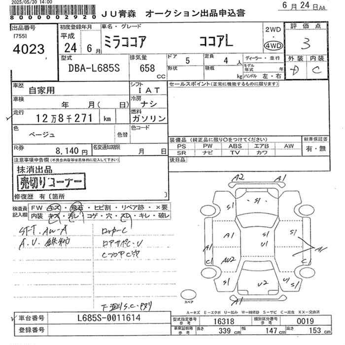 DAIHATSU MIRA COCOA 4WD L - лот 4023