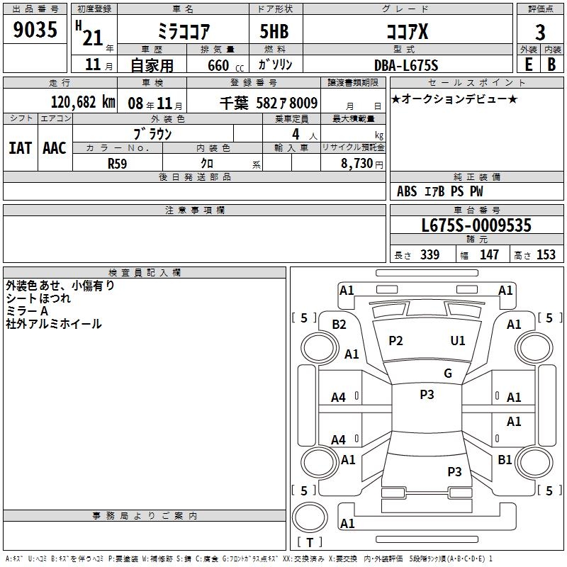 DAIHATSU MIRA COCOA COCOA X - лот 9035