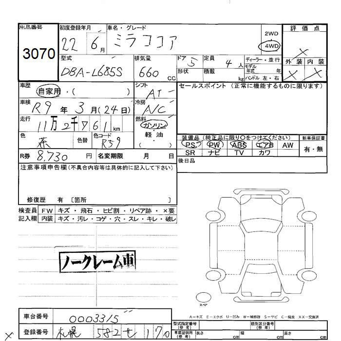 DAIHATSU MIRA COCOA 4WD - лот 3070