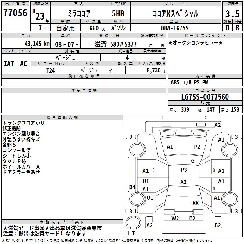 DAIHATSU MIRA COCOA COCOA X SPECIAL - лот 77056