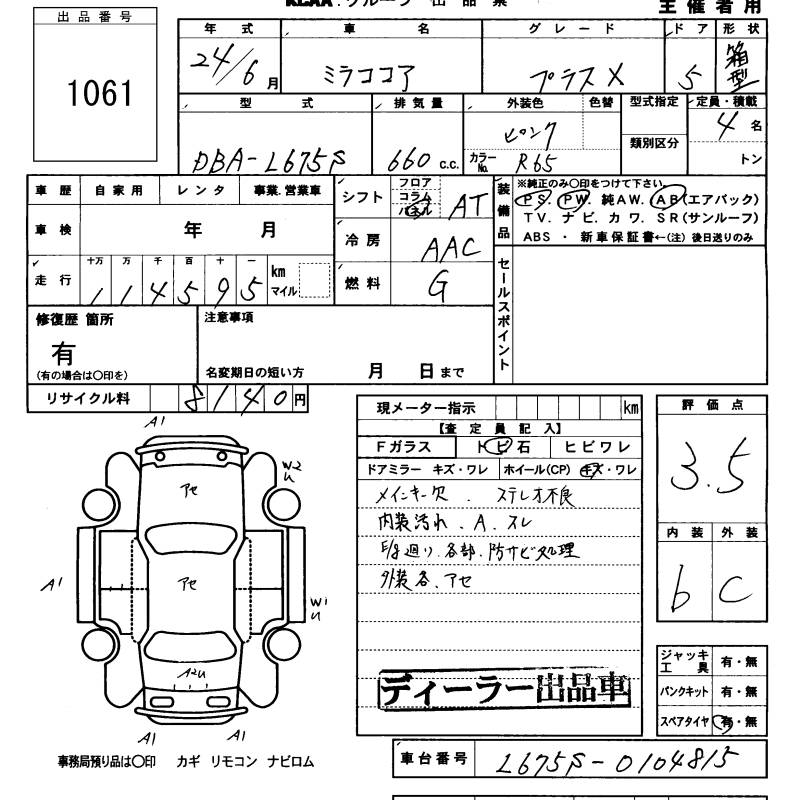 DAIHATSU MIRA COCOA - лот 1061