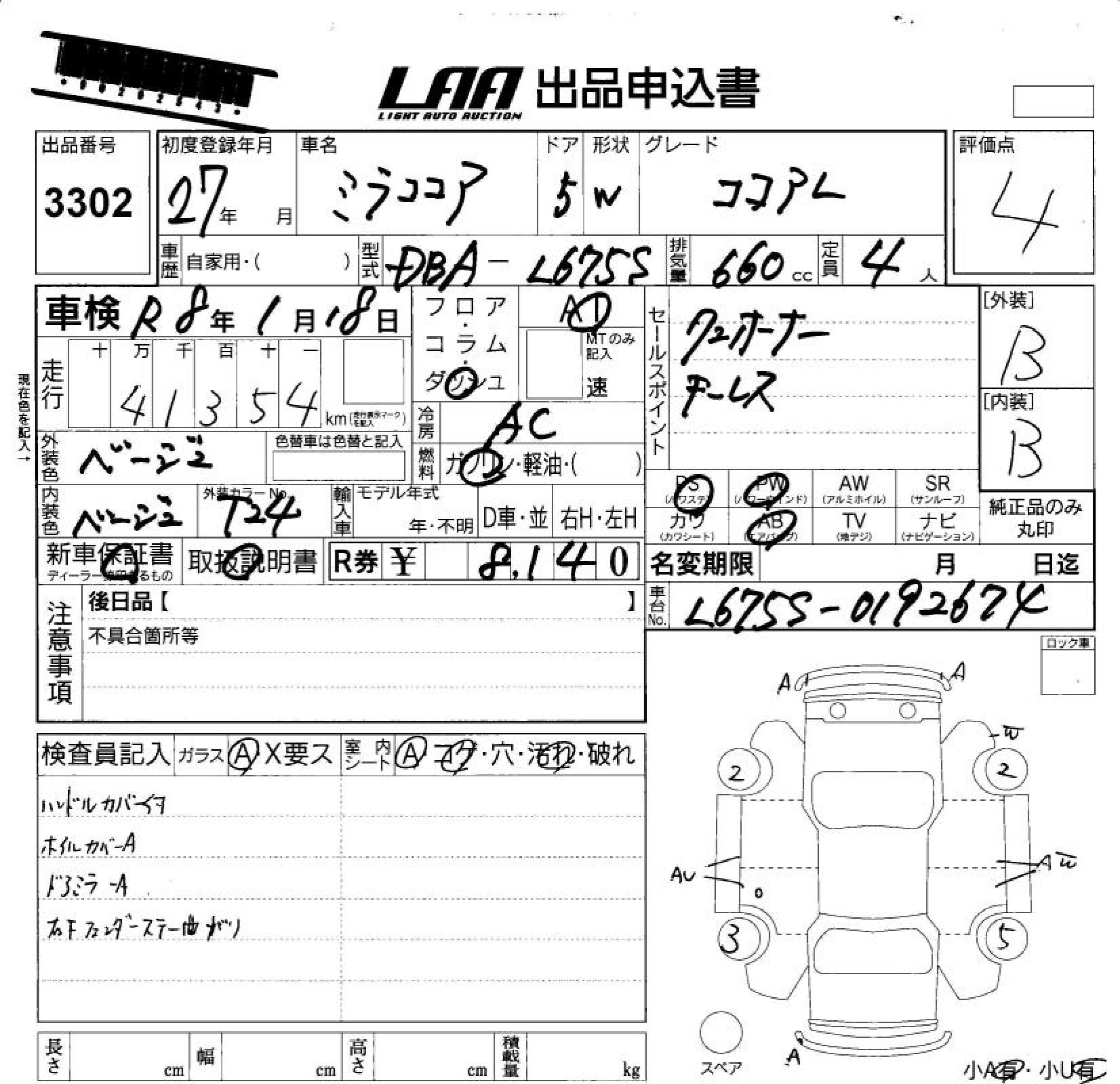 DAIHATSU MIRA COCOA - лот 3302