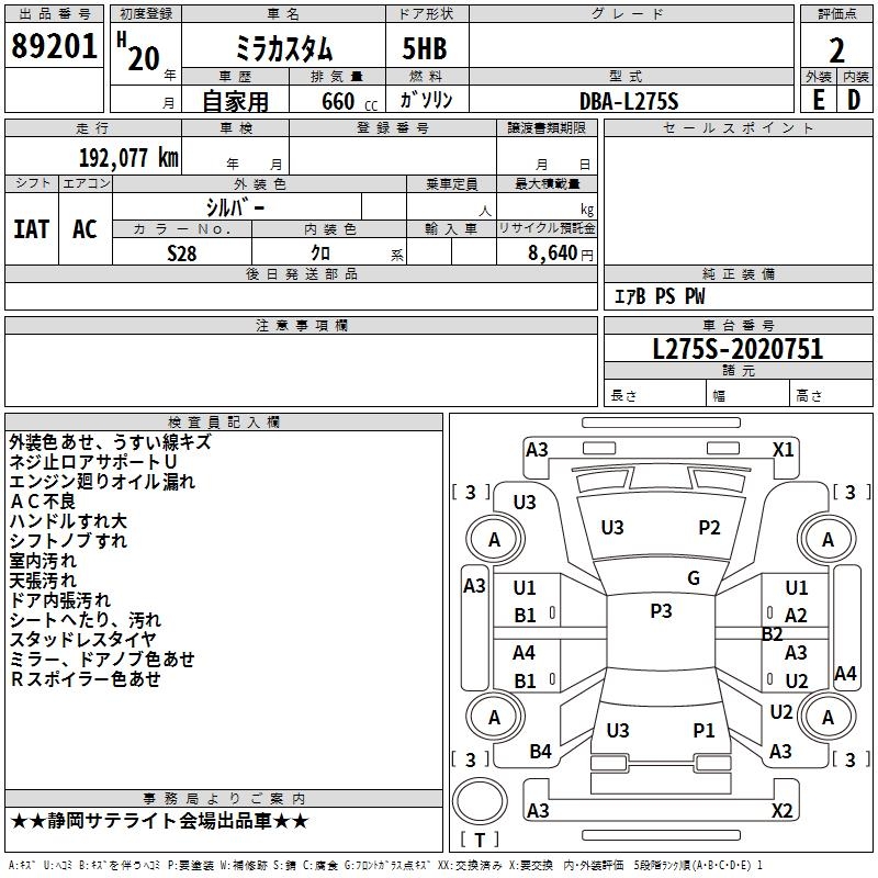 DAIHATSU MIRA CUSTOM - лот 89201