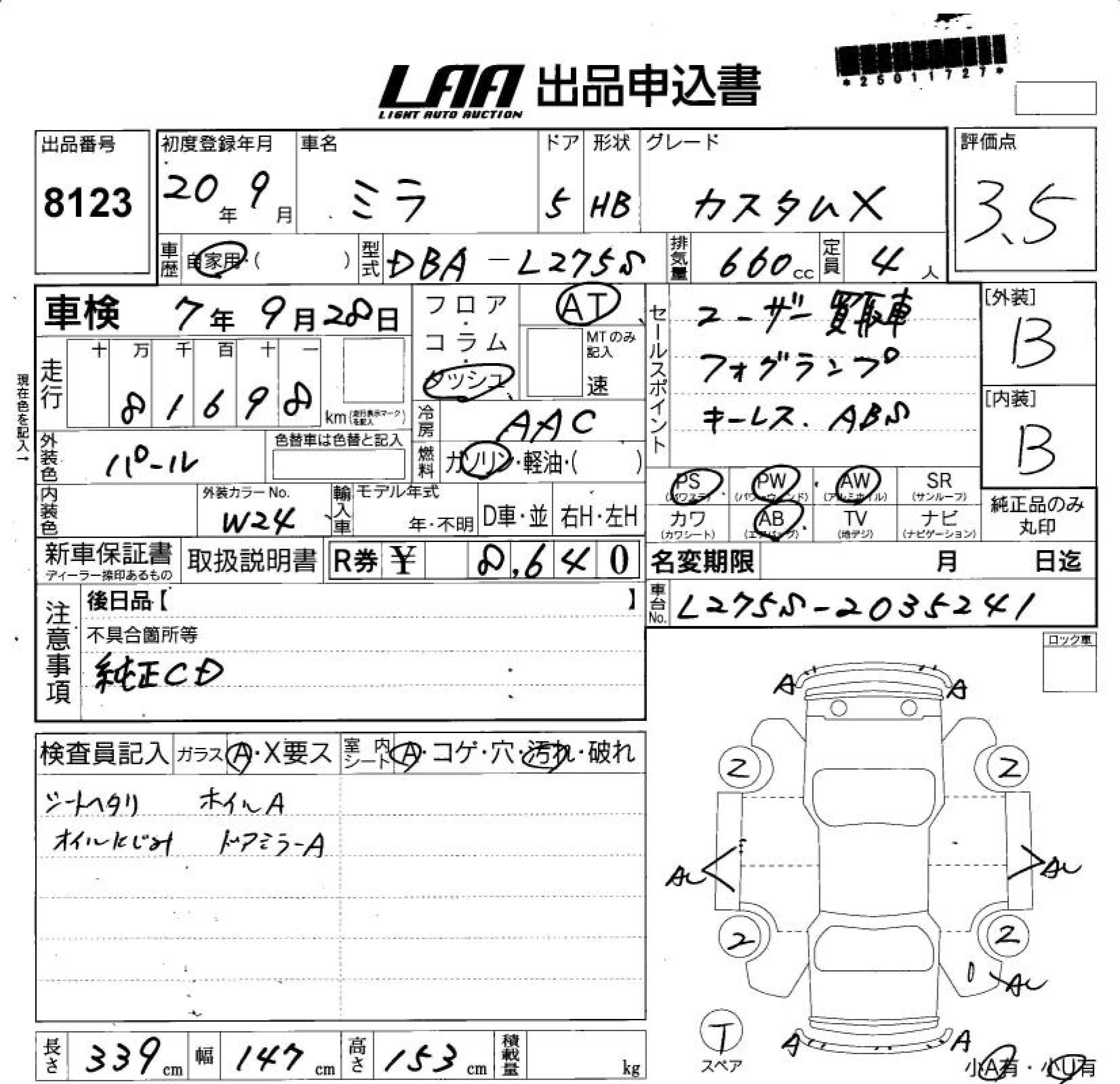 DAIHATSU MIRA CUSTOM X - лот 8123