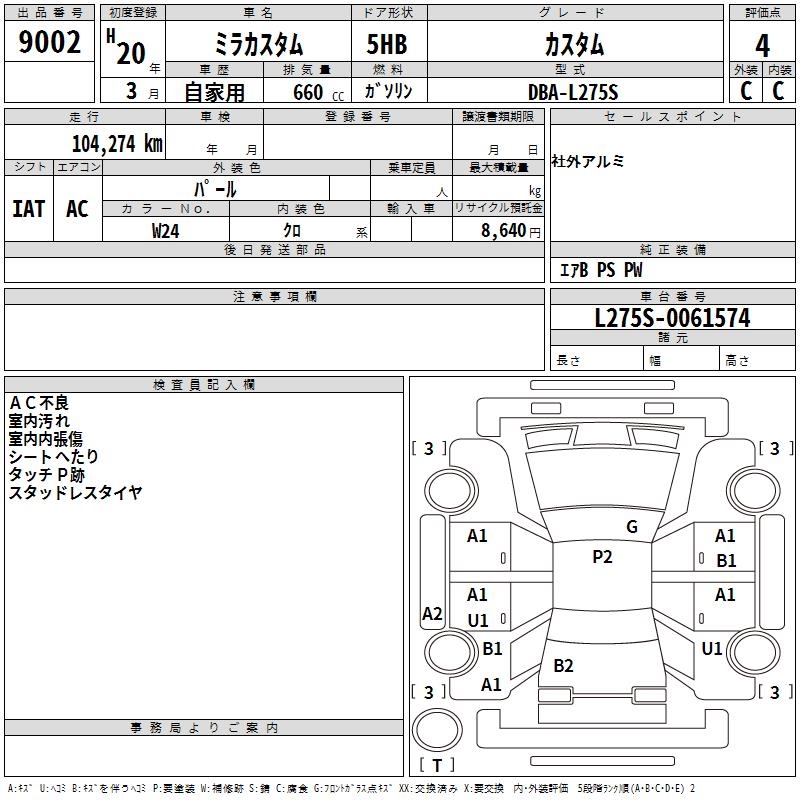 DAIHATSU MIRA CUSTOM CUSTOM - лот 9002