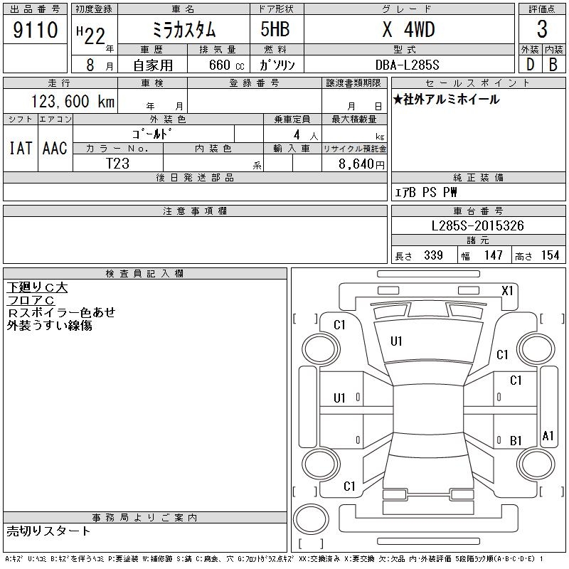 DAIHATSU MIRA CUSTOM - лот 9110