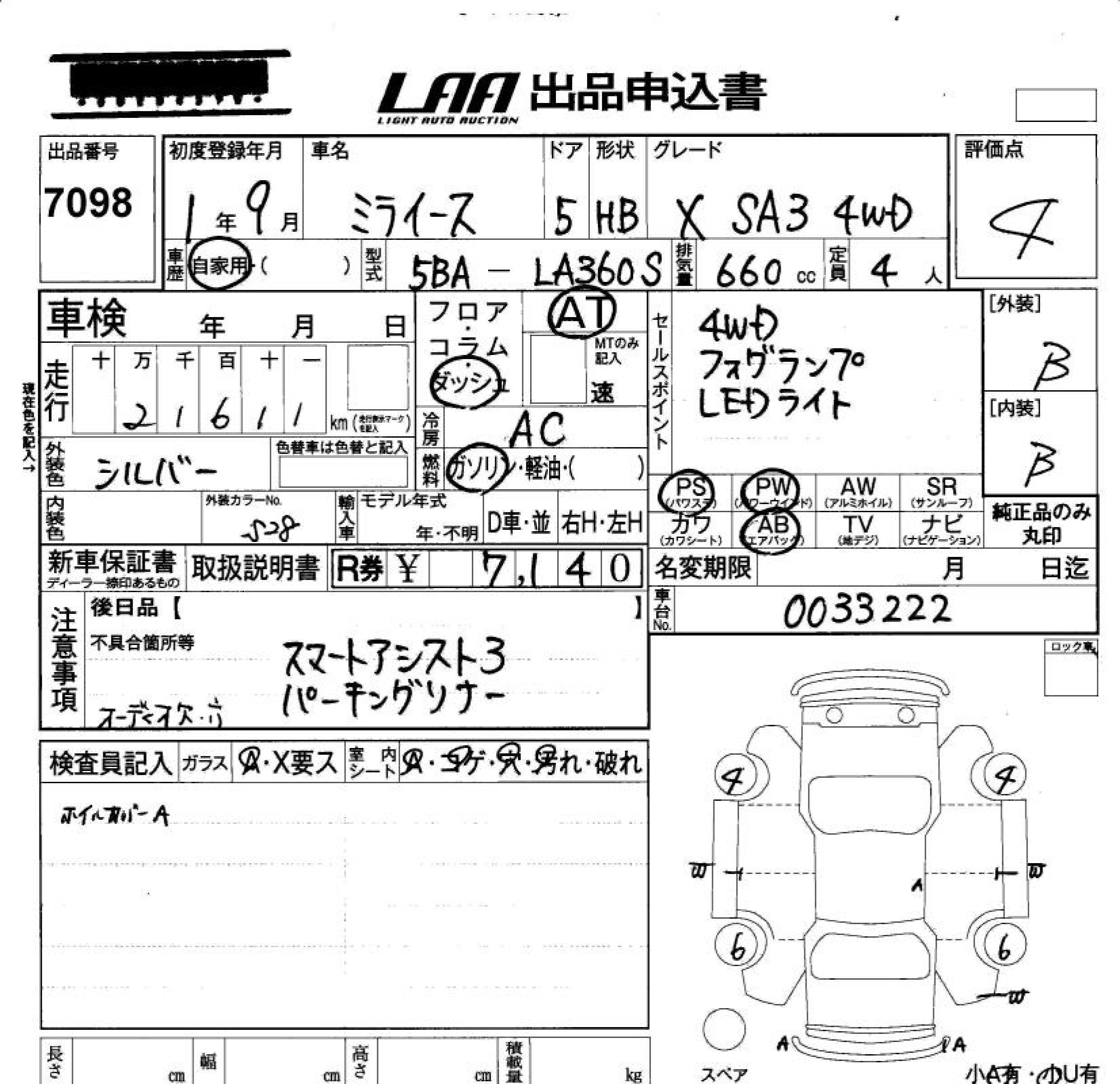DAIHATSU MIRA E:S X SA. 4WD - лот 7098