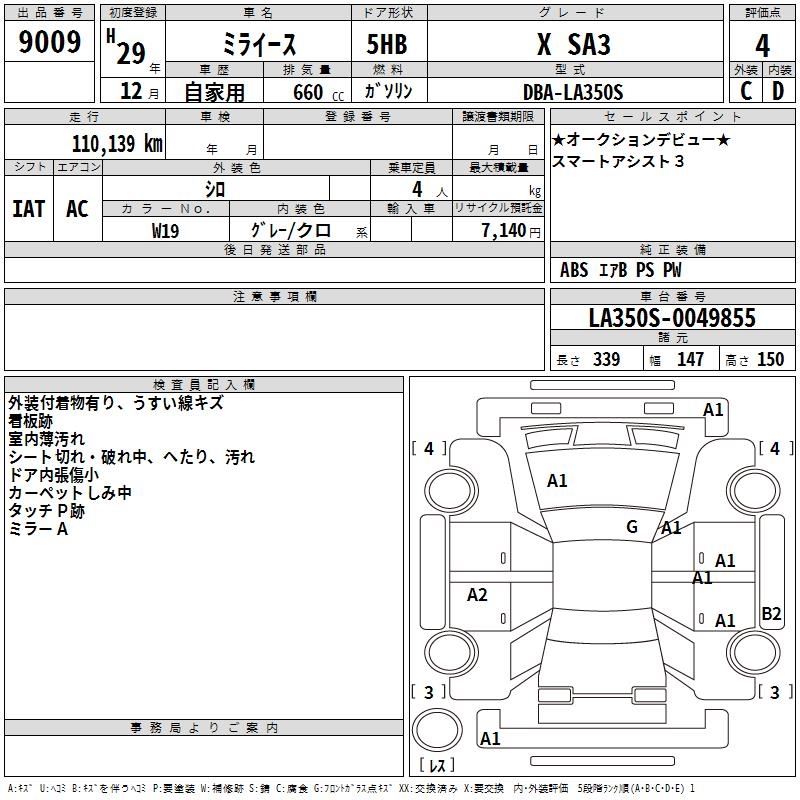DAIHATSU MIRA E:S X SA3 - лот 9009