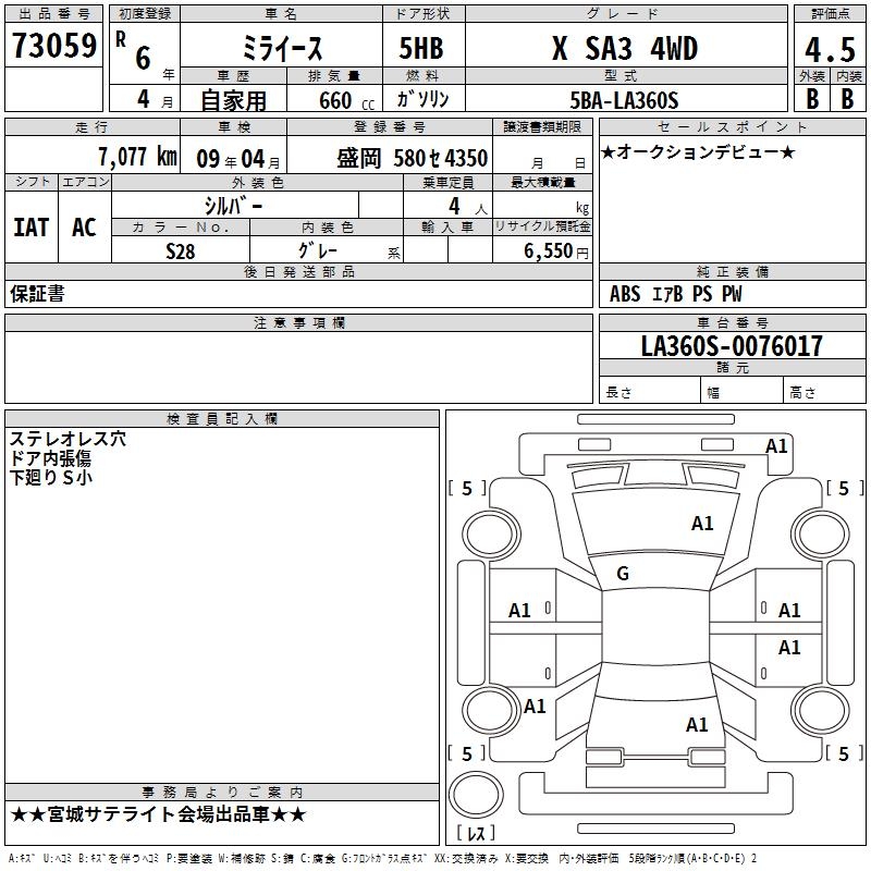 DAIHATSU MIRA E:S X SA3 4WD - лот 73059