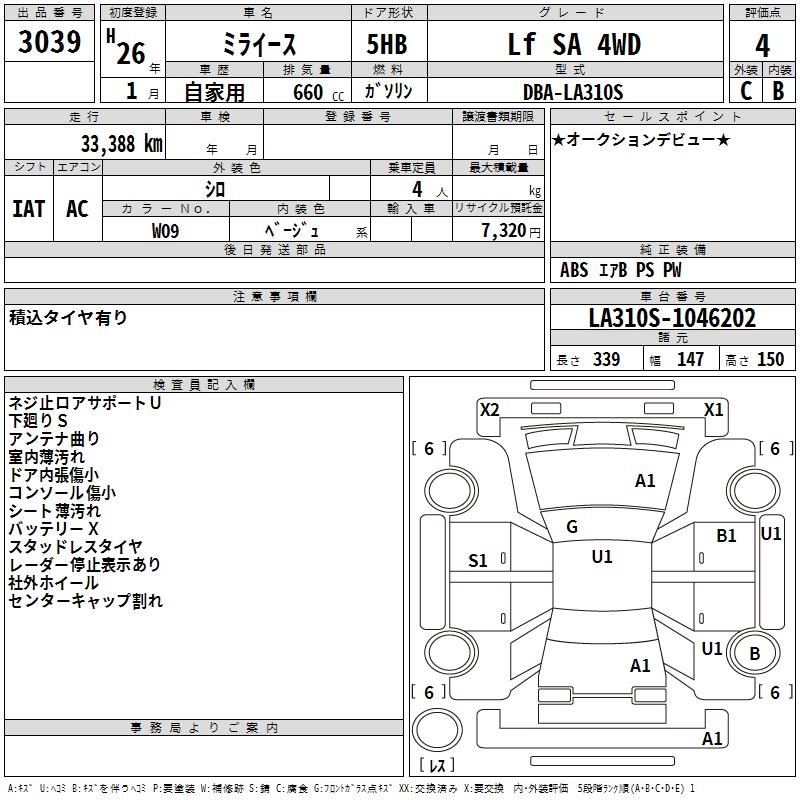 DAIHATSU MIRA E:S Lf SA 4WD - лот 3039