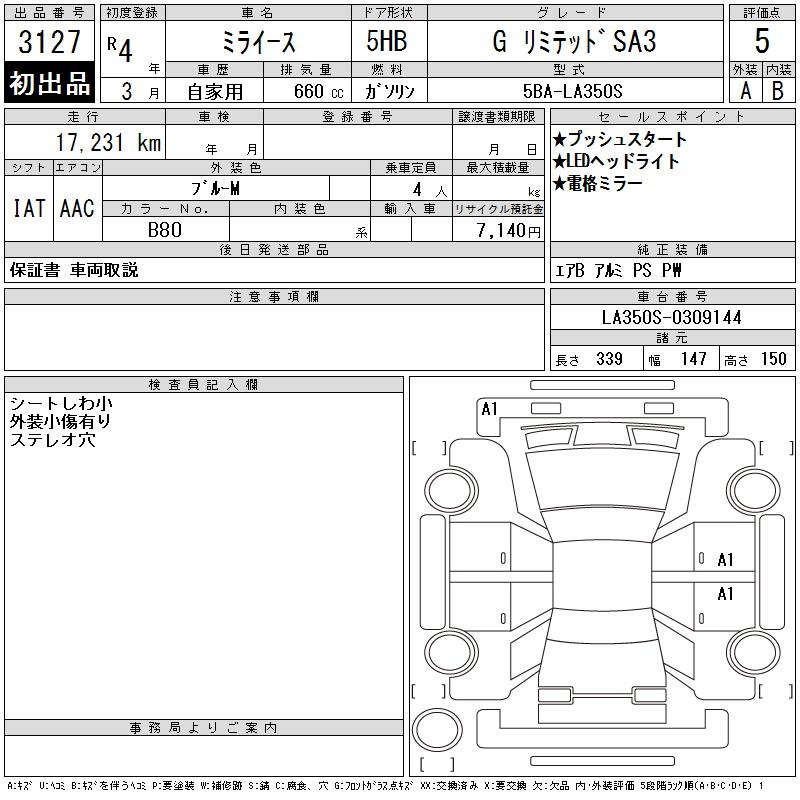 DAIHATSU MIRA E:S G LIMITED SA3 - лот 3127