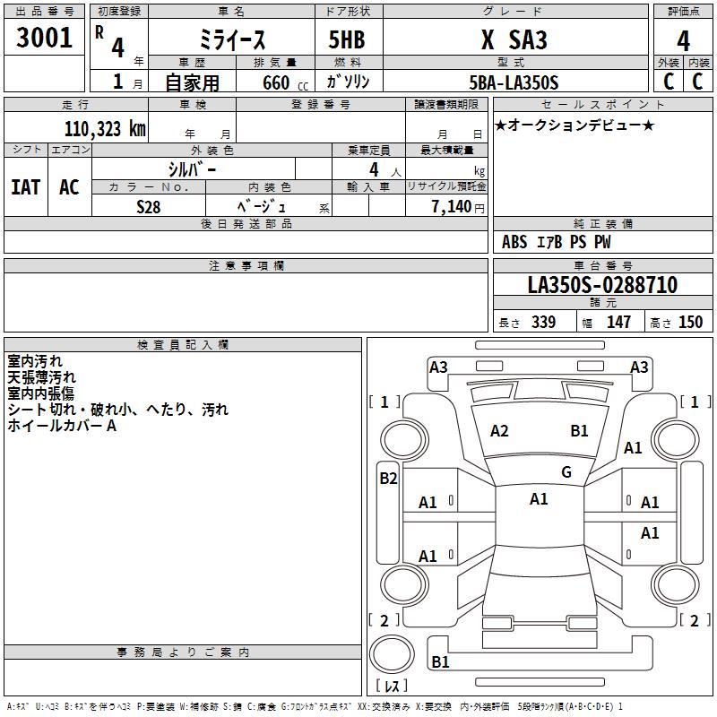 DAIHATSU MIRA E:S X SA3 - лот 3001