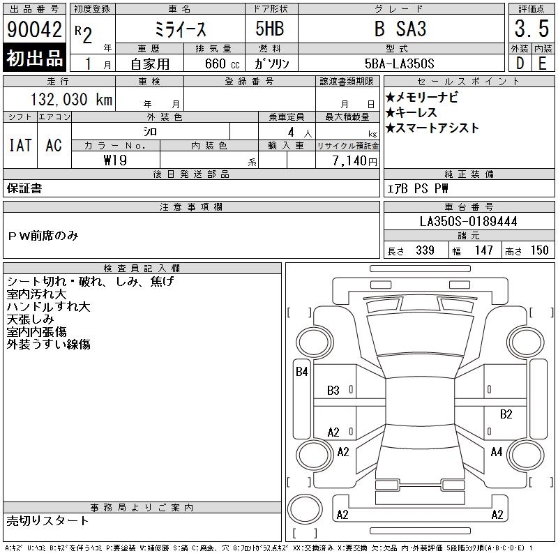 DAIHATSU MIRA E:S B SA3 - лот 90042