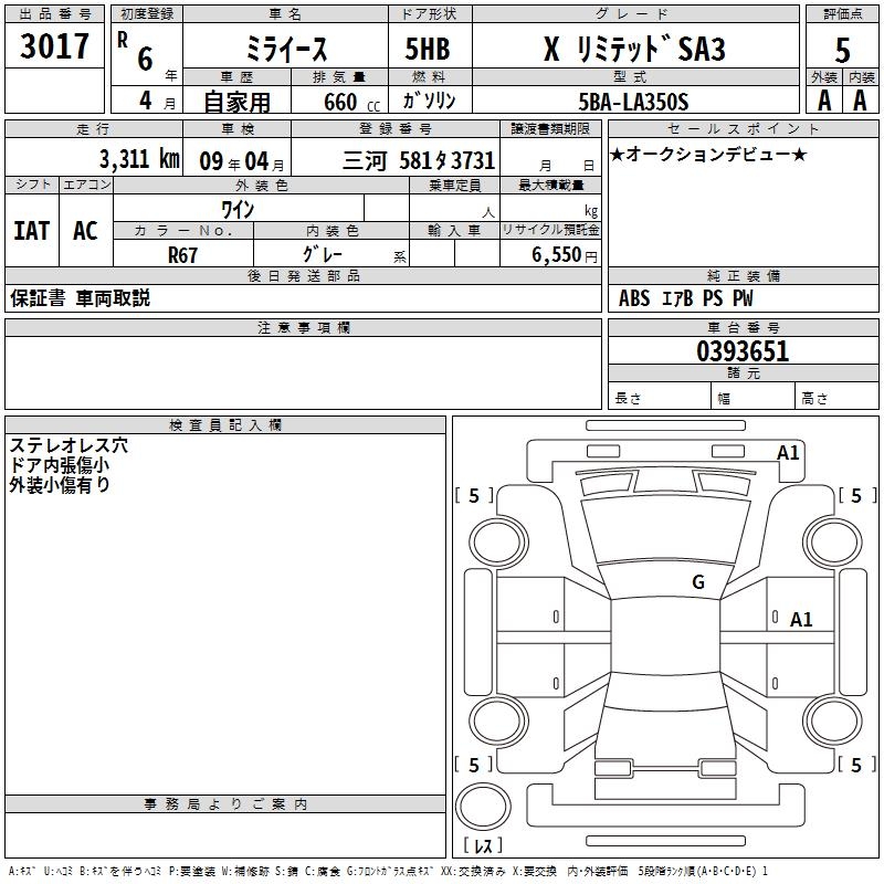 DAIHATSU MIRA E:S X LIMITED SA3 - лот 3017