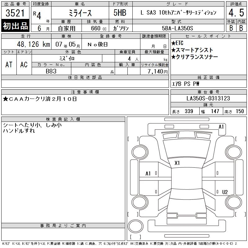 DAIHATSU MIRA E:S L SA3 10TH ANNIVERSARY ED - лот 3521