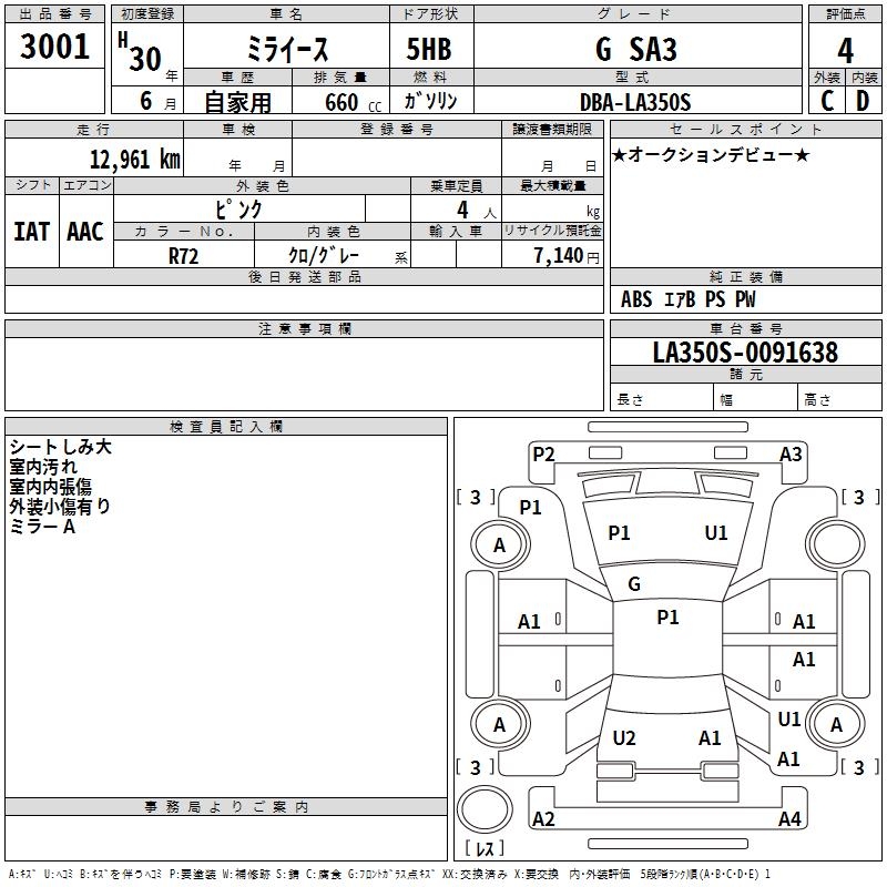 DAIHATSU MIRA E:S G SA3 - лот 3001