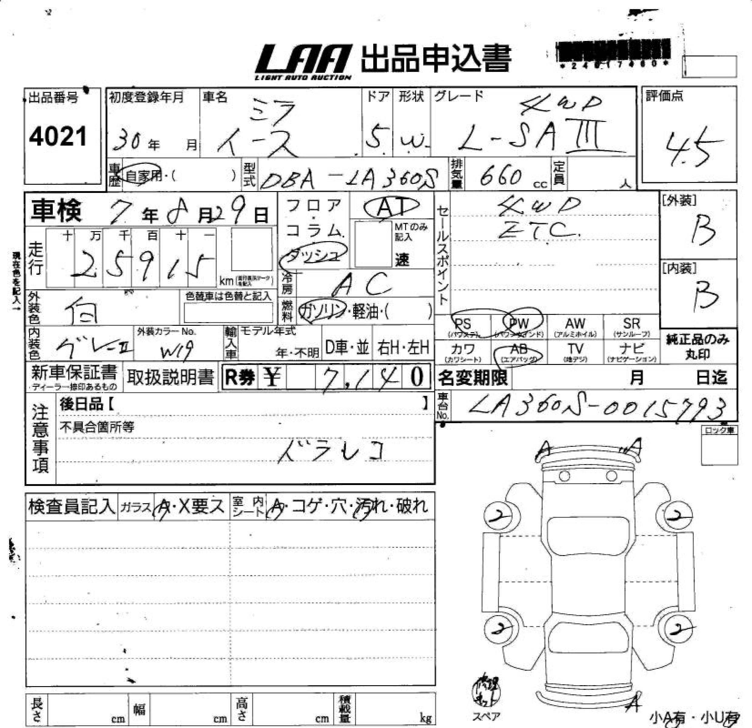DAIHATSU MIRA E:S L SA. 4WD - лот 4021