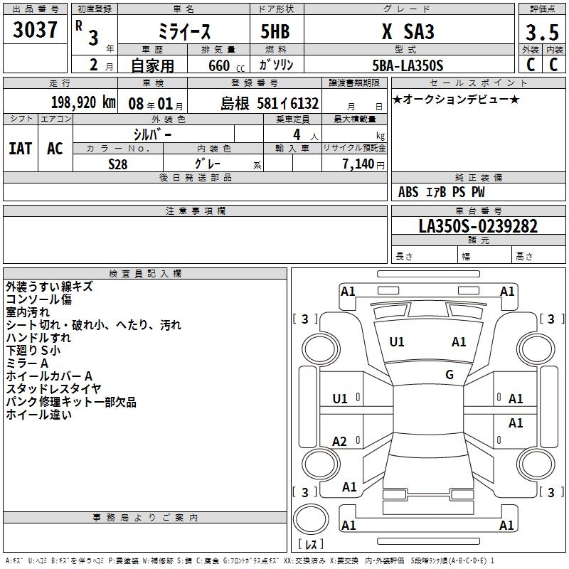 DAIHATSU MIRA E:S X SA3 - лот 3037