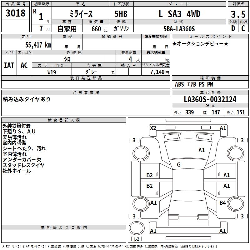 DAIHATSU MIRA E:S L SA3 4WD - лот 3018