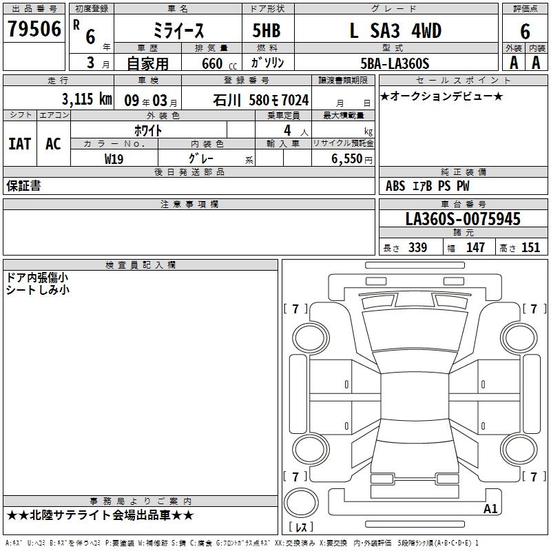 DAIHATSU MIRA E:S L SA3 4WD - лот 79506